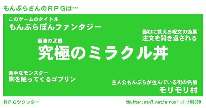 | 男性向けラノベタイトル風あだ名 | 『もんぷらの憂鬱』 |