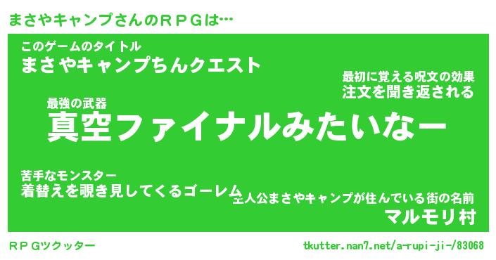 | 伝説のあだ名 | 『封印されし傭兵まさやキャンプ』 |