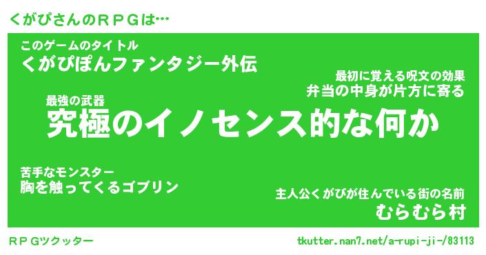 | 男性向けラノベタイトル風あだ名 | 『くがぴの憂鬱』 |