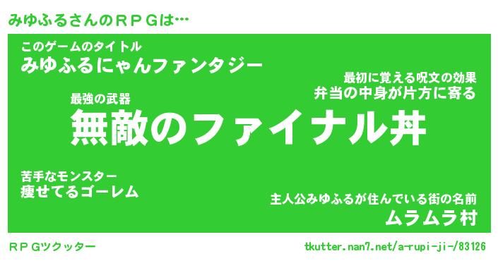 | ファンタジー風あだ名 | 『ミユフェル』『エターナルミユフルー』 |