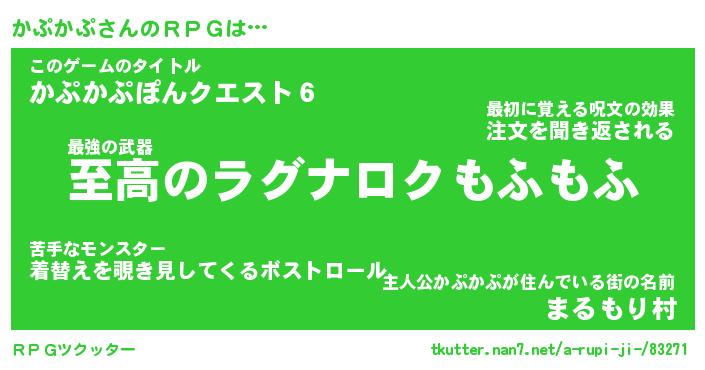 | ファンタジー風あだ名 | 『カプフェル』『エターナルカプカプー』 |