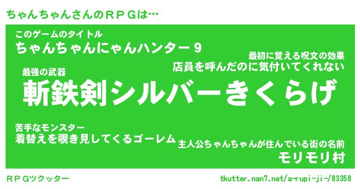 | 男性向けラノベタイトル風あだ名 | 『ちゃんちゃんの憂鬱』 |