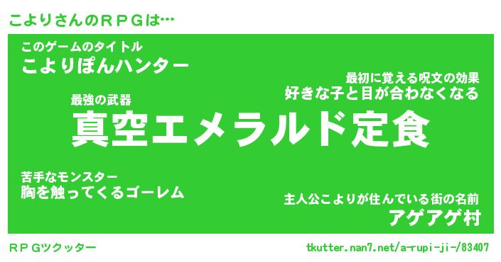 | 男性向けラノベタイトル風あだ名 | 『コヨリアートオンライン』 |