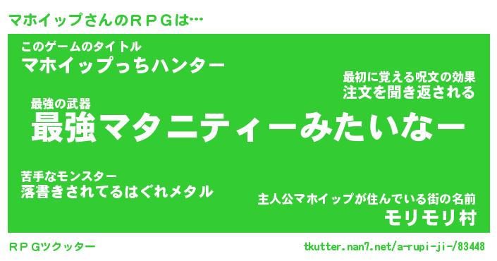 | 胡散臭い通販商品みたいなあだ名 | 『モテモテ間違いなし霊験あらたかなお札…その名も「マホイップ」』 |
