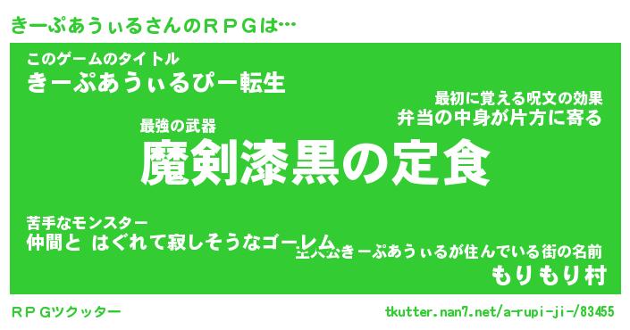 | 胡散臭い通販商品みたいなあだ名 | 『必ず成功する霊験あらたかなお札…その名も「きーぷあうぃる」』 |