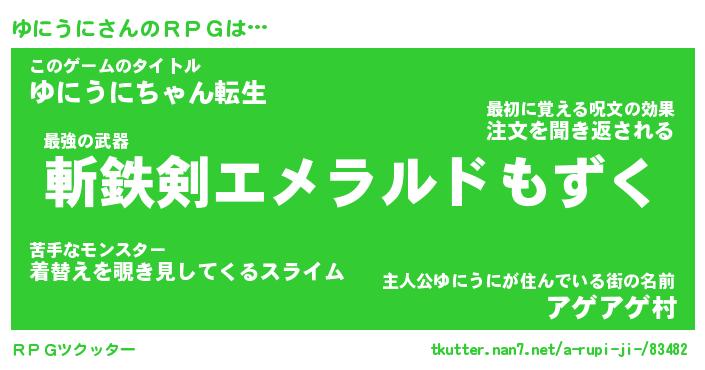| 胡散臭い通販商品みたいなあだ名 | 『必ず成功する霊験あらたかなお札…その名も「ゆにうに」』 |