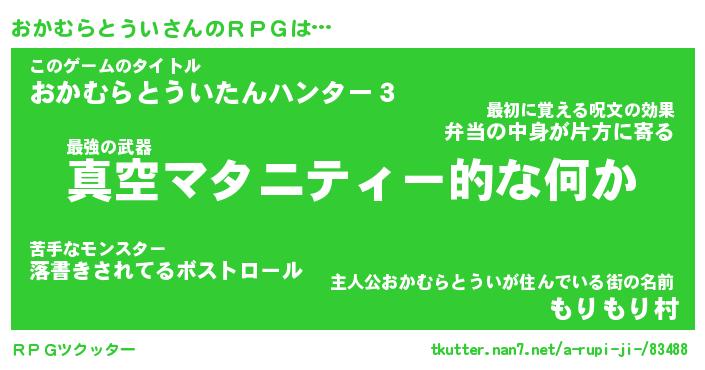| 伝説のあだ名 | 『封印されしスナイパーおかむらとうい』 |
