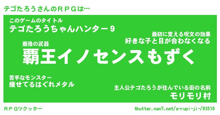 | ファンタジー風あだ名 | 『テゴフェル』『エターナルテゴタロウー』 |