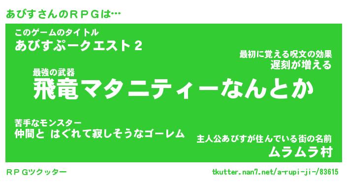| 伝説のあだ名 | 『封印されしスナイパーあびす』 |