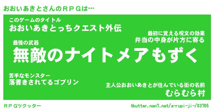 | 男性向けラノベタイトル風あだ名 | 『オオイアキトアートオンライン』 |