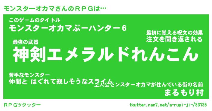 | 男性向けラノベタイトル風あだ名 | 『モンスターオカマの憂鬱』 |