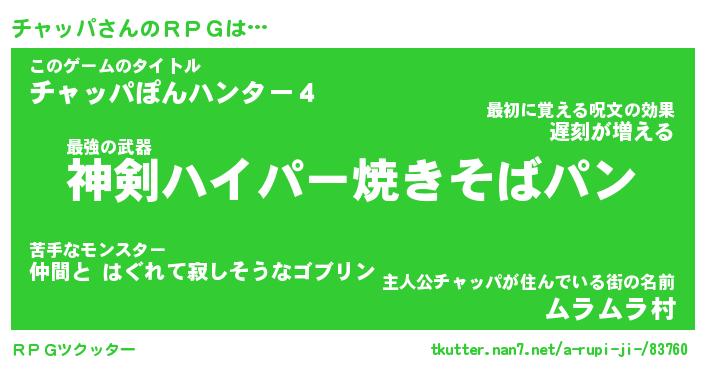 | 男性向けラノベタイトル風あだ名 | 『チャッパの憂鬱』 |