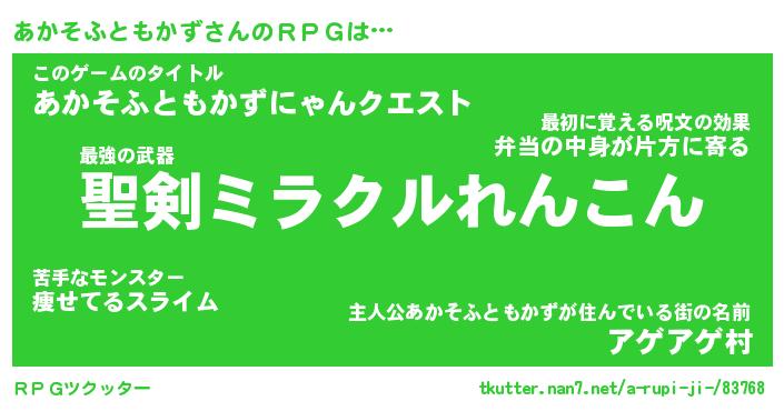 | 胡散臭い通販商品みたいなあだ名 | 『必ず成功するブレスレット…その名も「あかそふともかず」』 |