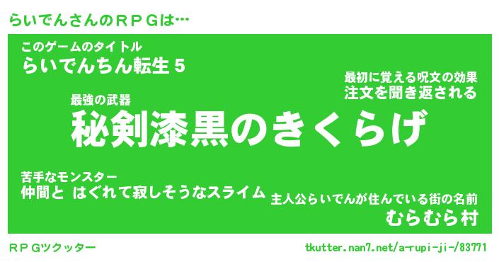 | 胡散臭い通販商品みたいなあだ名 | 『必ず成功する霊験あらたかなお札…その名も「らいでん」』 |