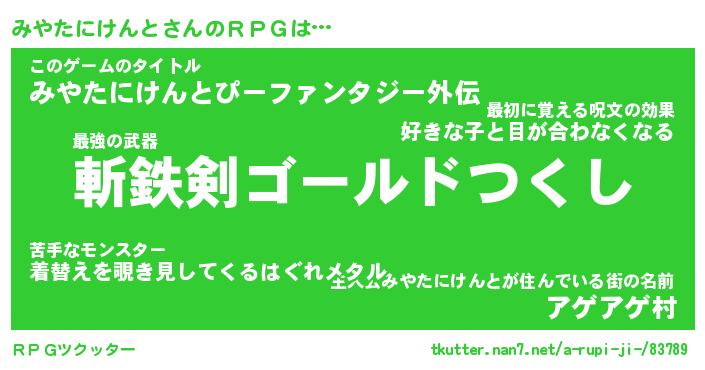| 伝説のあだ名 | 『伝説のスナイパーみやたにけんと』 |