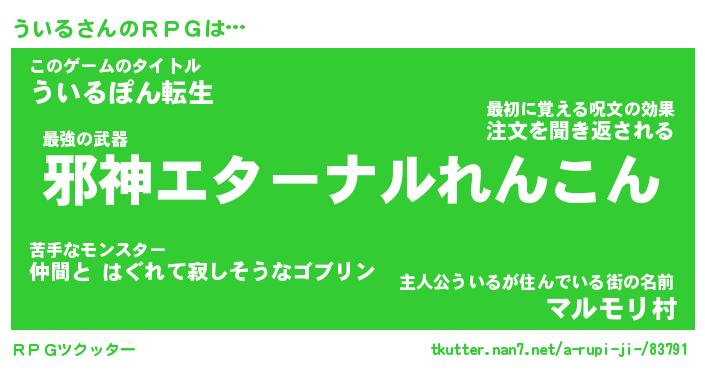 | 伝説のあだ名 | 『封印されし傭兵ういる』 |