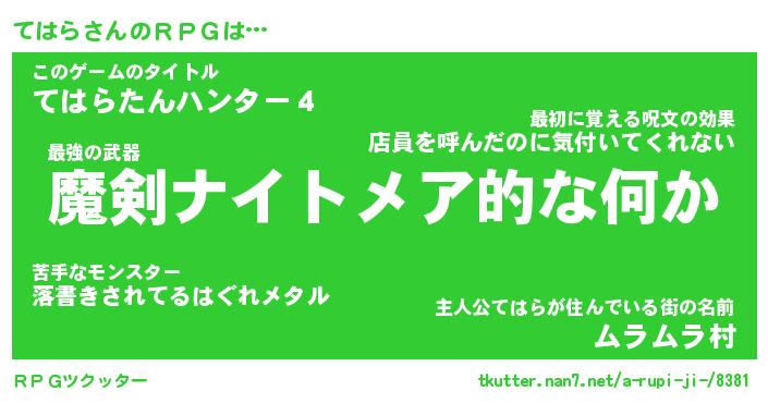 | 胡散臭い通販商品みたいなあだ名 | 『必ず成功する霊験あらたかなお札…その名も「てはら」』 |