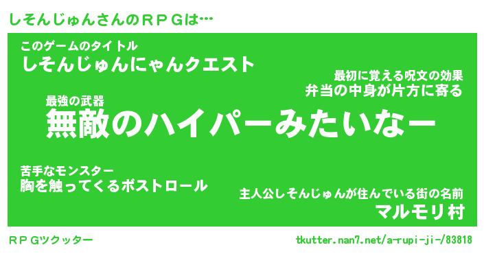 | 男性向けラノベタイトル風あだ名 | 『シソンジュンアートオンライン』 |