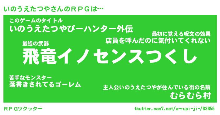 | 男性向けラノベタイトル風あだ名 | 『イノウエタツヤアートオンライン』 |
