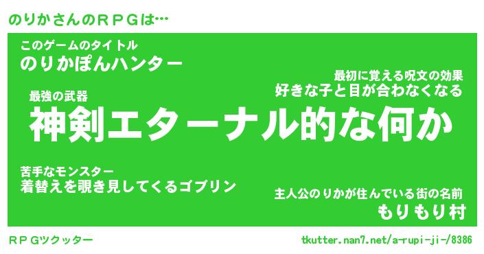 | 女子向けラノベタイトル風あだ名 | 『のりか姫と円卓の騎士』 |