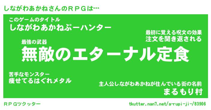 | 男性向けラノベタイトル風あだ名 | 『シナガワアカネアートオンライン』 |