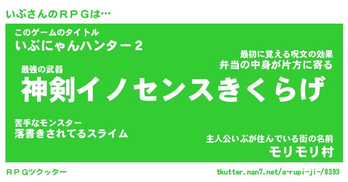 | 男性向けラノベタイトル風あだ名 | 『いぶの憂鬱』 |