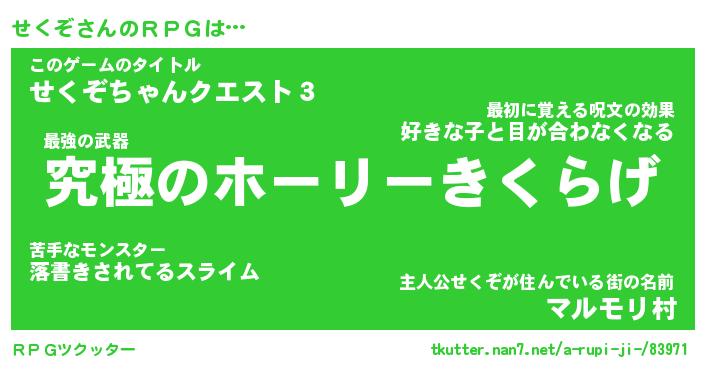 | 男性向けラノベタイトル風あだ名 | 『せくぞの憂鬱』 |