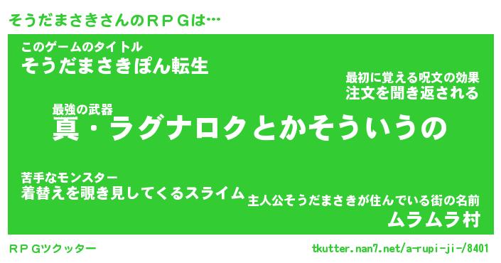 | 伝説のあだ名 | 『封印されし竜騎士そうだまさき』 |