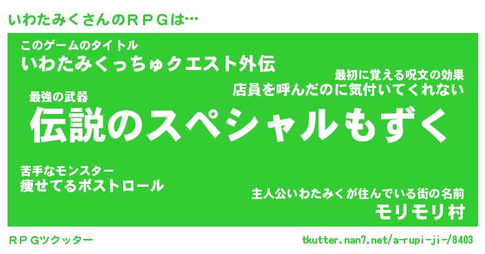 | ファンタジー風あだ名 | 『イワフェル』『エターナルイワタミクー』 |
