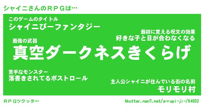 | ファンタジー風あだ名 | 『シャフェル』『エターナルシャイニー』 |