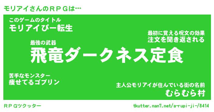 | 男性向けラノベタイトル風あだ名 | 『モリアイアートオンライン』 |