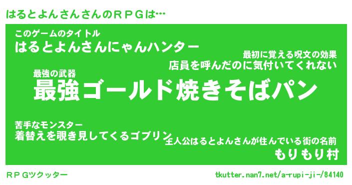 | 男性向けラノベタイトル風あだ名 | 『ハルトヨンサンアートオンライン』 |