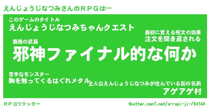 | 伝説のあだ名 | 『封印されし竜騎士えんじょうじなつみ』 |