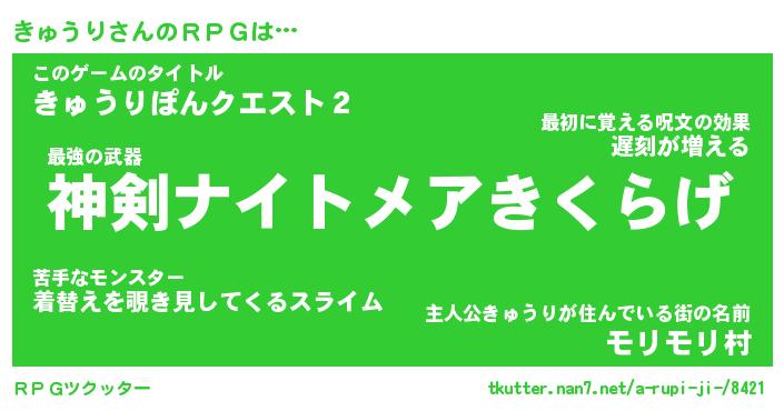 | 女子向けラノベタイトル風あだ名 | 『きゅうり姫と円卓の騎士』 |