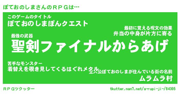 | 伝説のあだ名 | 『伝説の竜騎士ぽておのしま』 |