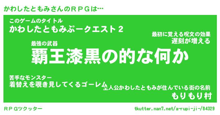 | 男性向けラノベタイトル風あだ名 | 『カワシタトモミアートオンライン』 |