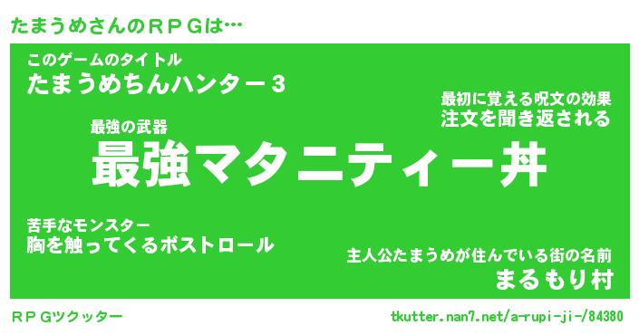 | ファンタジー風あだ名 | 『タマフェル』『エターナルタマウメー』 |