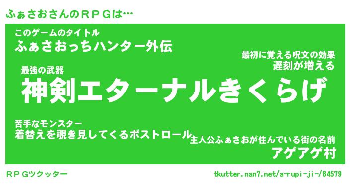 | 男性向けラノベタイトル風あだ名 | 『ふぁさおの憂鬱』 |
