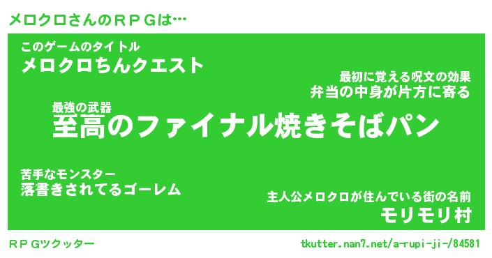 | ファンタジー風あだ名 | 『メロフェル』『エターナルメロクロー』 |