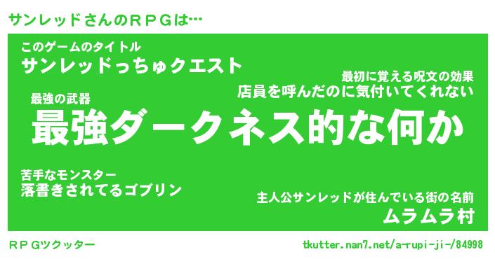 | ヒーロー風カッコイイあだ名 | 『スーパーサンレッド』『幻影騎士サン』 |