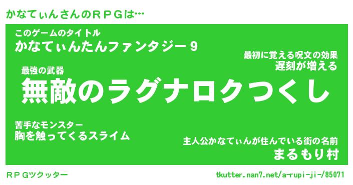| ファンタジー風あだ名 | 『カナフェル』『エターナルカナティンー』 |