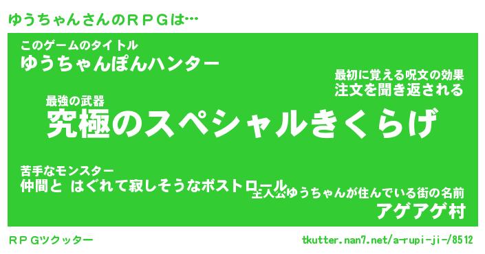| ファンタジー風あだ名 | 『ユウフェル』『エターナルユウチャンー』 |