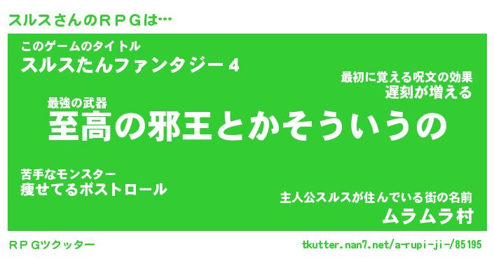 | ファンタジー風あだ名 | 『スルフェル』『エターナルスルスー』 |
