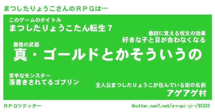 | 伝説のあだ名 | 『封印されし傭兵まつしたりょうこ』 |