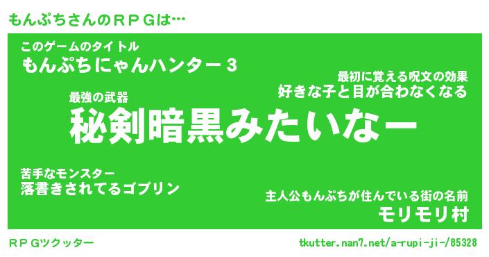 | ファンタジー風あだ名 | 『モンフェル』『エターナルモンプチー』 |