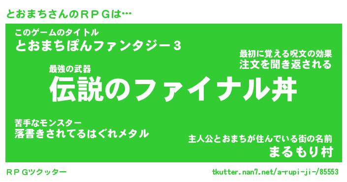 | ファンタジー風あだ名 | 『トオフェル』『エターナルトオマチー』 |