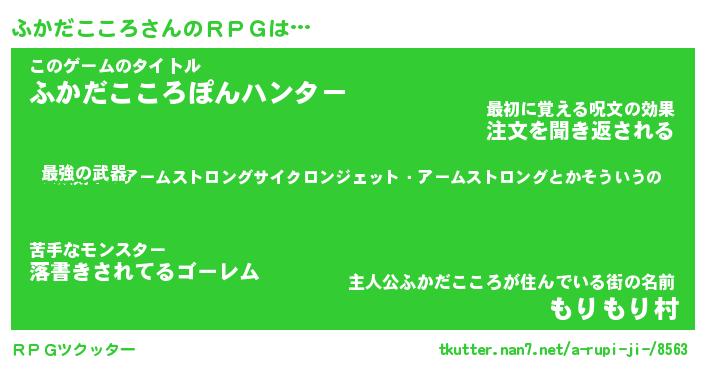 | 男性向けラノベタイトル風あだ名 | 『ふかだこころの憂鬱』 |