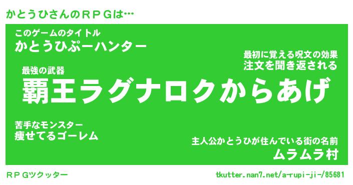 | 男性向けラノベタイトル風あだ名 | 『カトウヒアートオンライン』 |