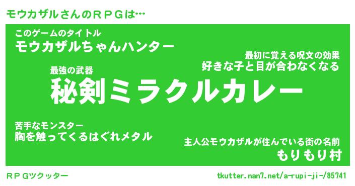 | ファンタジー風あだ名 | 『モウフェル』『エターナルモウカザルー』 |