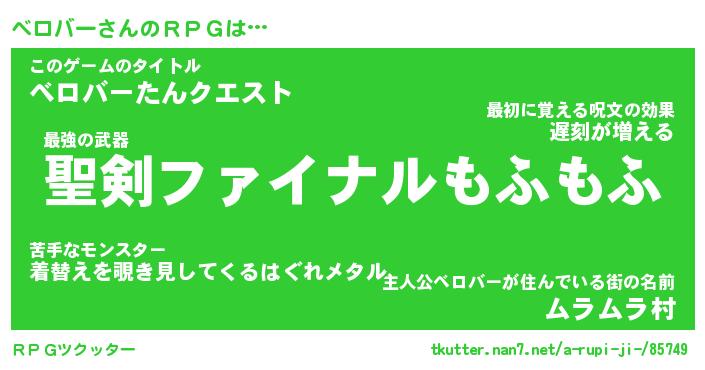| ファンタジー風あだ名 | 『ベロフェル』『エターナルベロバーー』 |